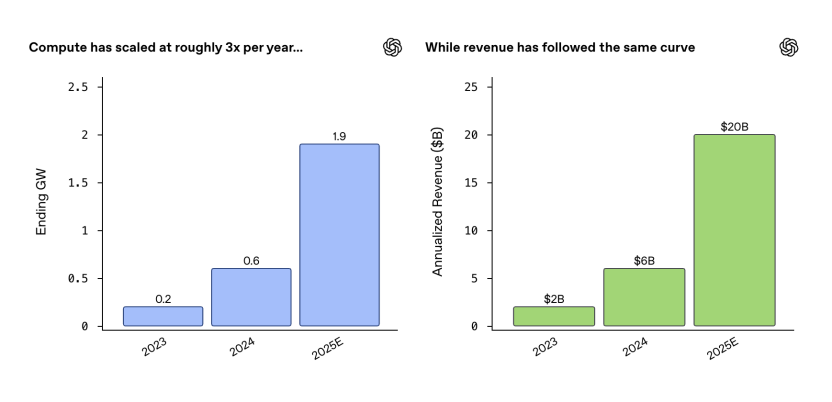 举个例子:2023年咱们的算力约为200兆瓦,对应的年度频繁性收入(ARR)为20亿好意思元;2024年算力达到600兆瓦,咱们以60亿好意思元的收入罢了该年;而到昨年2025年罢了时,咱们的算力达到2吉瓦,收入则卓著200亿好意思元。这显走漏增长一直在加快。