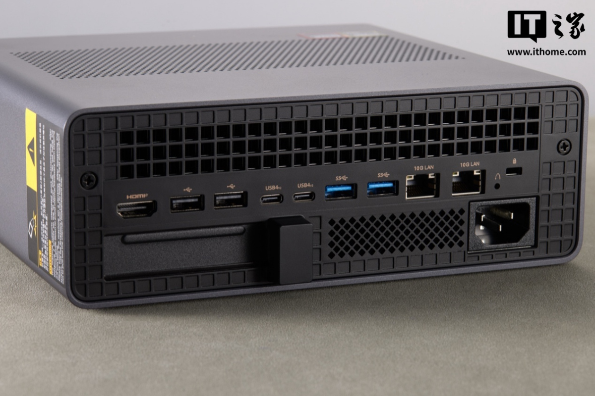 MS-S1 MAX Mini AI Workstation 接收天外铝机身,名义经多说念工艺处理后的磨砂质感,在保险整机强度的同期,也带来了出色的质感。