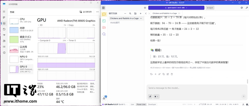 随后,IT之家测试了 Qwen 最新的 Qwen3-next-80b 模子,天然模子领域更大,不外其推理速率达到了 40.25 token/s,输出效力相同准确。
