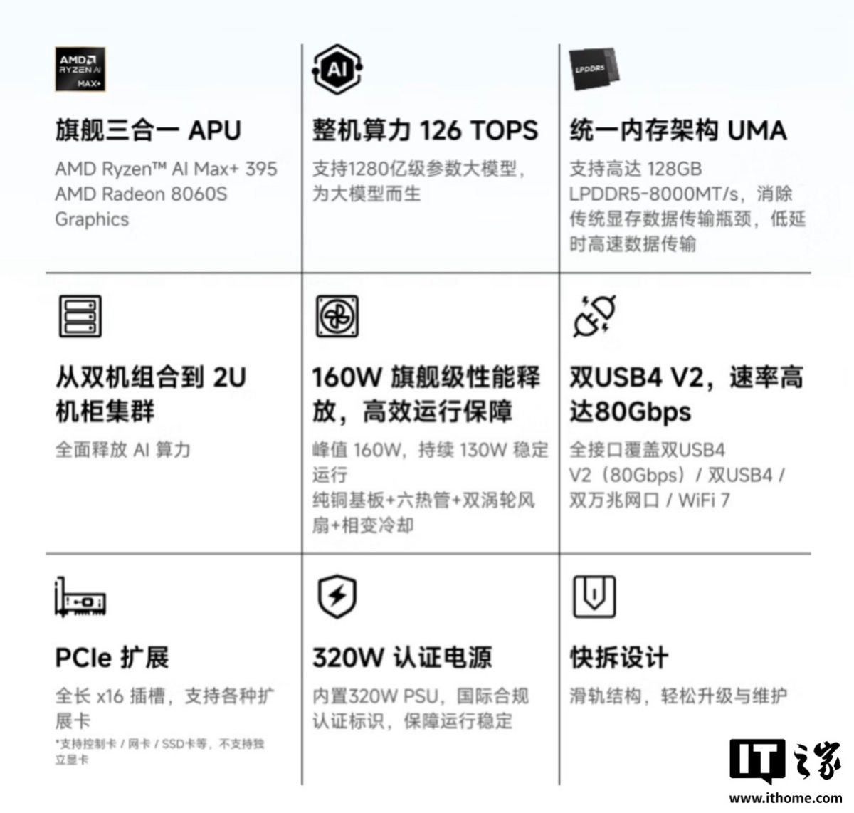 被 AMD 称为“生逢当时”的 AMD 锐龙 AI Max+395 处理器,接收了立异的“CPU+iGPU+NPU”异构狡计架构,以 16 核 32 线程的 "Zen5" 架构 CPU,最强集显性能和高达 50TOPS 算力的 NPU,号称当今出动平台顶级处理器,正以其特有的期间上风引颈端侧 AI 推理的新海浪。