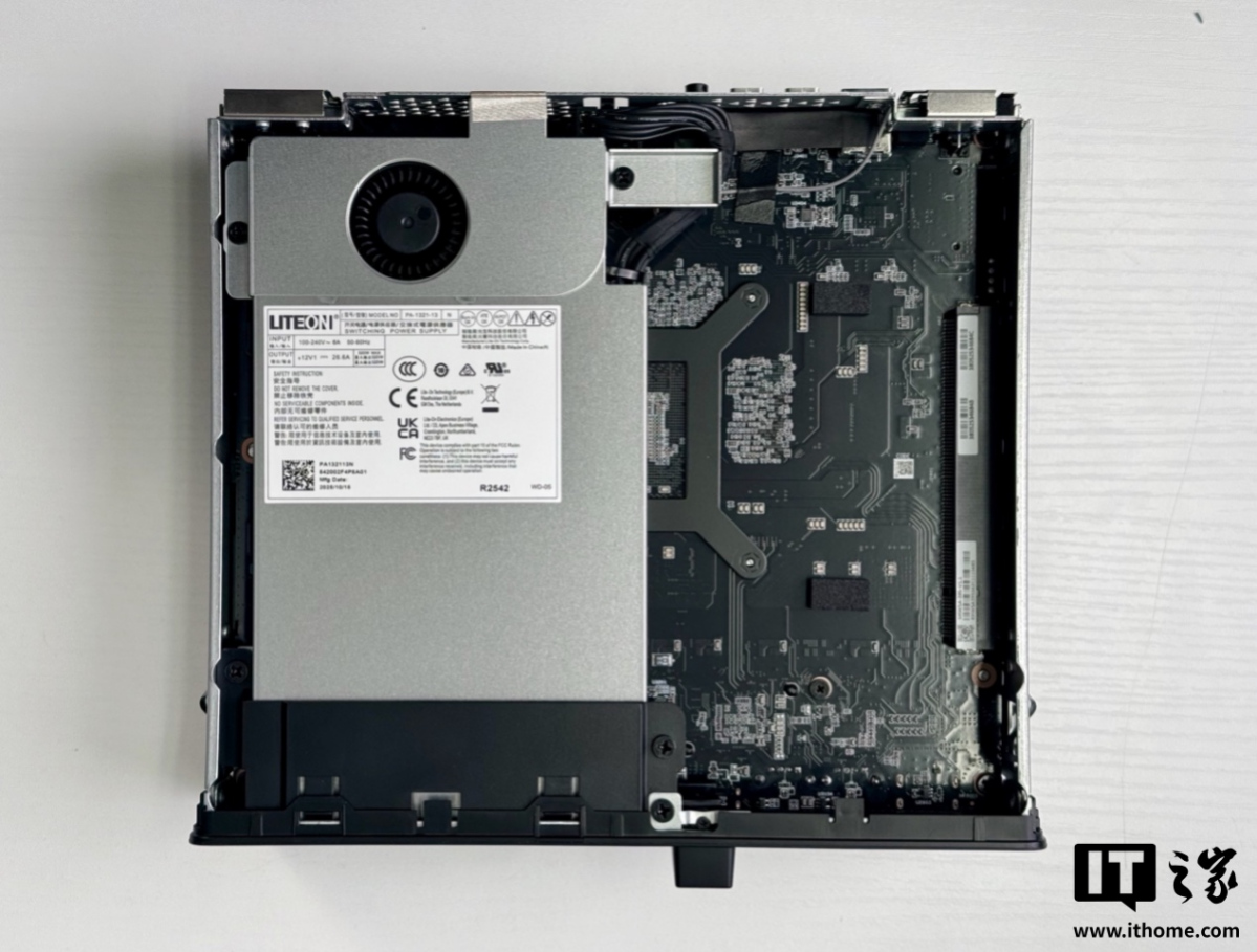 整机尺寸为 222.1 × 206.3 × 77.1 mm(长 × 宽 × 高),容积约 3.5 升,分量 2.8 公斤,属于紧凑型 Mini 主机。