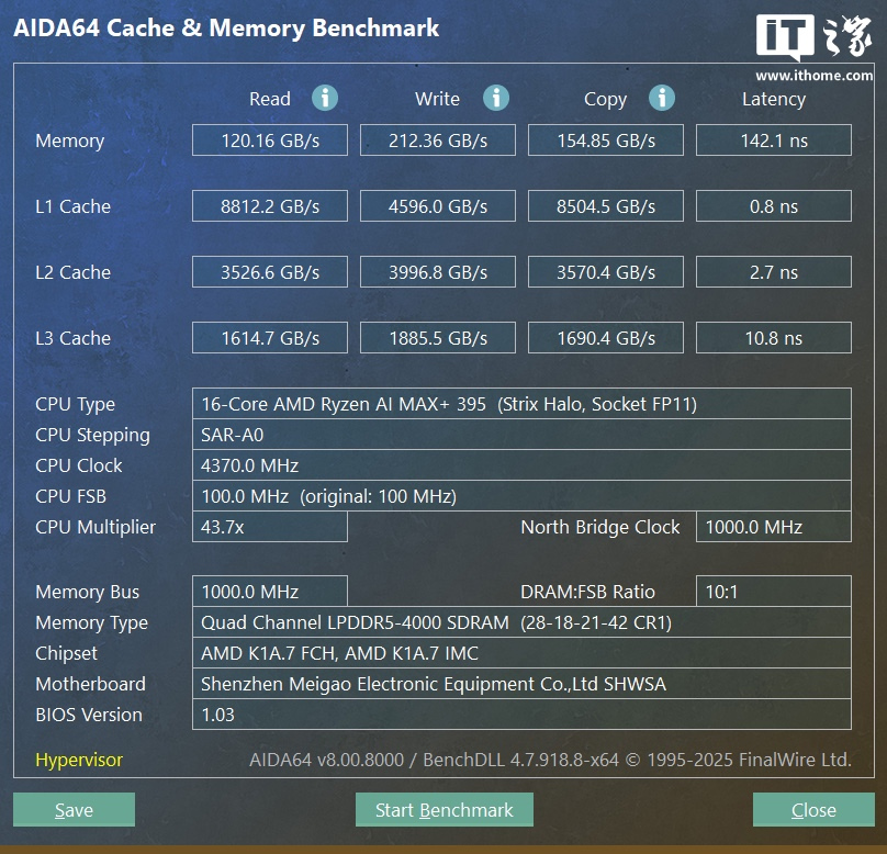 此外,铭凡 MS-S1 MAX 迷你 AI 职责站还搭载了 128GB 的 LPDDR5-8000 MT/s 斡旋内存架构内存,以及 2TB SSD。IT之家实测内存剖释如下: