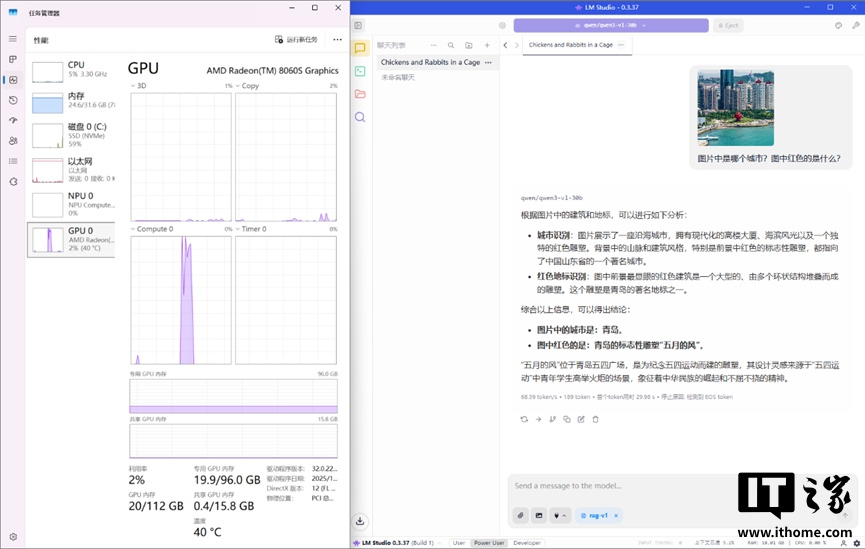 除了笔墨类的模子,IT之家也尝试使用 Qwen3-VL 测试其在图片领路类模子上的剖释,IT之家输入了上图并参议图片中的处所是那处。模子给出了准确的识别和谜底,最终输出速率达到了 68.39token/s,速率特等快。