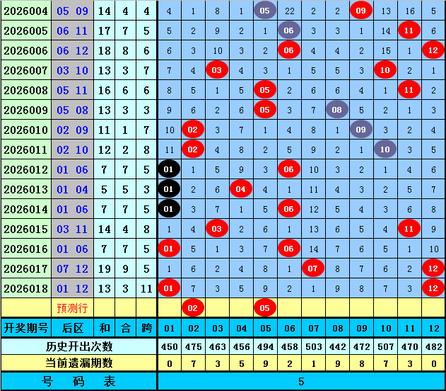 后差异析(界说:01-04为一区,05-08为二区,09-12为三区):上期后区开出奖号01和12,分别出当今第一区和第三区和区,最近10期后区三个区间落号个数比为9:6:5,本期后区细心第一区和第二区号码出现,激情两码02、05。