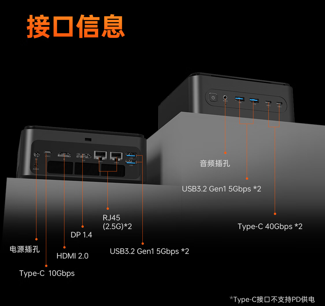 IT之家注释到,Mini GTS 在外部 I/O 接口方面提供 2 个 USB4、2 个 2.5GbE RJ45,无缺情况如下: