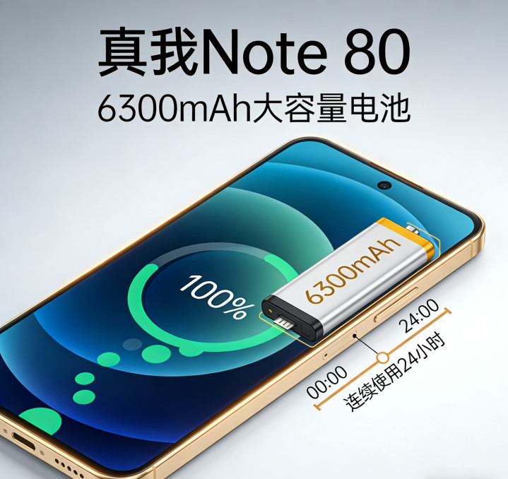 2026年2月26日,真我官廉明式发布新品预报,全新真我Note 80笃定将于3月5日负责与耗尽者碰头。这款定位初学实用级的机型,莫得堆砌花哨参数,也莫得主打电竞与影像堆料,而是把用户最刚需的续航作念到塌实:标配6300mAh大容量电板,同期给出四年电板健康保险、宽温域富厚初始等耐用性遐想,精果真中学生党、户外责任者、父老用户与备用机东谈主群的核肉痛点。