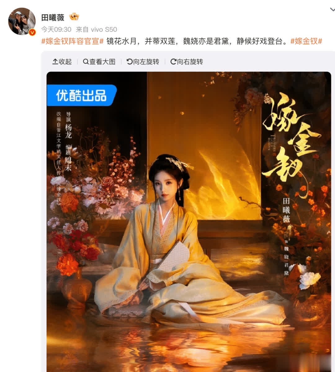 幸运彩app 田曦薇新剧定妆照曝光,没了刘海辨识度骤降