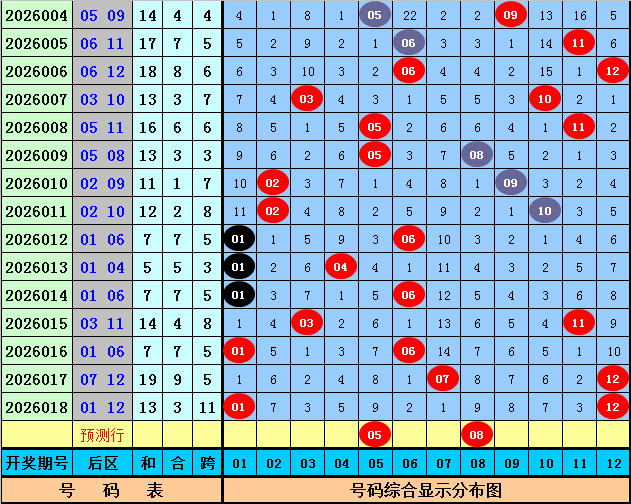 后差异析:上期后区为一奇一偶号码01+12,最近10期后区号码奇偶比为10:10,最近50期后区奇偶比为50:50,本期后区参考一奇一偶组合,关怀两码05、08。