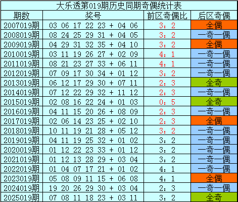 后区别析:在第019期历史同时开奖中,后区奖号奇偶比为18:20,最近5年同时后区奇偶走势为:一奇一偶、一奇一偶、全偶、一奇一偶、全奇,本年同时瞻望再出全奇组合,参考号码09、11。